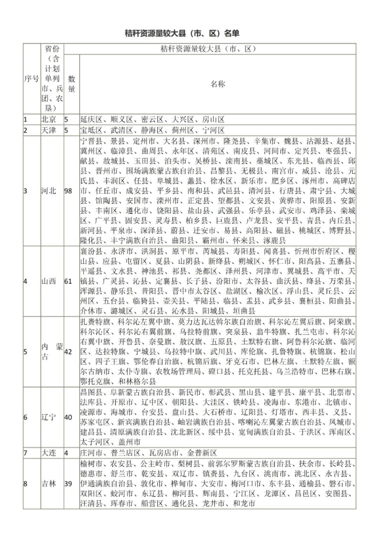 3.秸稈資源量較大縣(市、區)名單