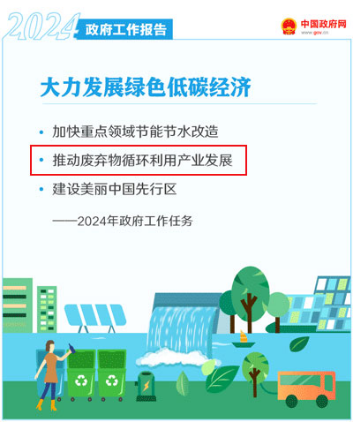 3月5日,第十四屆全國(guó)人大代表大會(huì)第二次會(huì)議開(kāi)幕,國(guó)務(wù)院總理李強(qiáng)代表國(guó)務(wù)院作政府工作報(bào)告。其中提出,2024年,要大力發(fā)展綠色低碳經(jīng)濟(jì),推動(dòng)廢棄物循環(huán)利用產(chǎn)業(yè)發(fā)展。