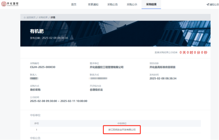 開化縣國控工程管理有限公司是開化縣國有獨資企業(yè),本次采購的有機肥將用于開化縣下屬華埠、桐村、長虹、池淮等各鄉(xiāng)鎮(zhèn)(21個村)的高標準農(nóng)田項目建設(shè)。